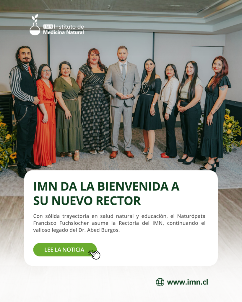 Con este cambio de Rectoría, el Instituto de Medicina Natural inicia una nueva etapa orientada a consolidar su proyecto educativo, fortalecer la formación profesional en Naturopatía y ampliar su aporte a la salud integral en Chile y Latinoamérica.