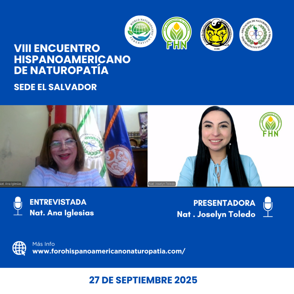 En el marco del VIII Encuentro Hispanoamericano de Naturopatía, la naturópata Joselyn Toledo, presidenta de la ONG Naturópatas para Chile y directora de Relaciones Internacionales del Foro Hispanoamericano de Naturopatía (FHN), sostuvo una inspiradora conversación con Ana Iglesias, presidenta fundadora de la Asociación de Naturópatas y Profesionales Salvadoreños (ANPS).